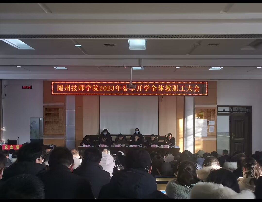 1月30日上(shàng)午8:30,隨州技師學院在學院階梯教室召開了本學(xué)期第一次全(quán)體教職工大會(huì),學院(yuàn)黨委委員、副院長(zhǎng)劉飛同誌主持會議。學院黨委(wěi)副(fù)書記、院長吳海東同誌及其他(tā)領導班子成員出席(xí)會議,會議總結了學院2022年工作,部署安排了學院2023年工作。