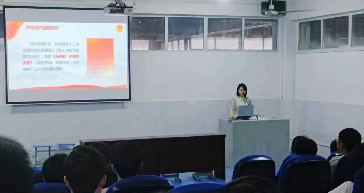 學院團委老師劉力嘉以“入團第一課”為主題,為全(quán)體團員講團課,帶領(lǐng)大家學習了團旗、團徽、團歌、團(tuán)章和團員證等知識,了解和重溫了五四運動的曆史由來,五四精神的核心以(yǐ)及五四精神的踐行者。利用(yòng)《入團第一課》同名宣傳教育片,展示了“黨的關懷”、“團的曆史”、“身邊的共青團”、“青年典型說”、“加入共青團”等內(nèi)容,使青(qīng)年團員們了解了黨對青少(shǎo)年和共青團的親切關懷(huái)和殷(yīn)切期望,了解了團的光榮曆史和優良傳(chuán)統,了解了共青團的品牌工(gōng)作以及團員的權利、責任與義務。