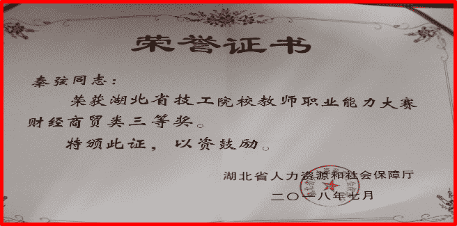 2018年8月榮獲湖北省第一屆湖北省技工(gōng)院校教(jiāo)師職業能力大賽財經商貿類三等(děng)獎