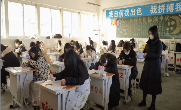 文化(huà)課考試在標準化(huà)考場進行(háng)。同學們奮筆疾書,爭分奪秒。