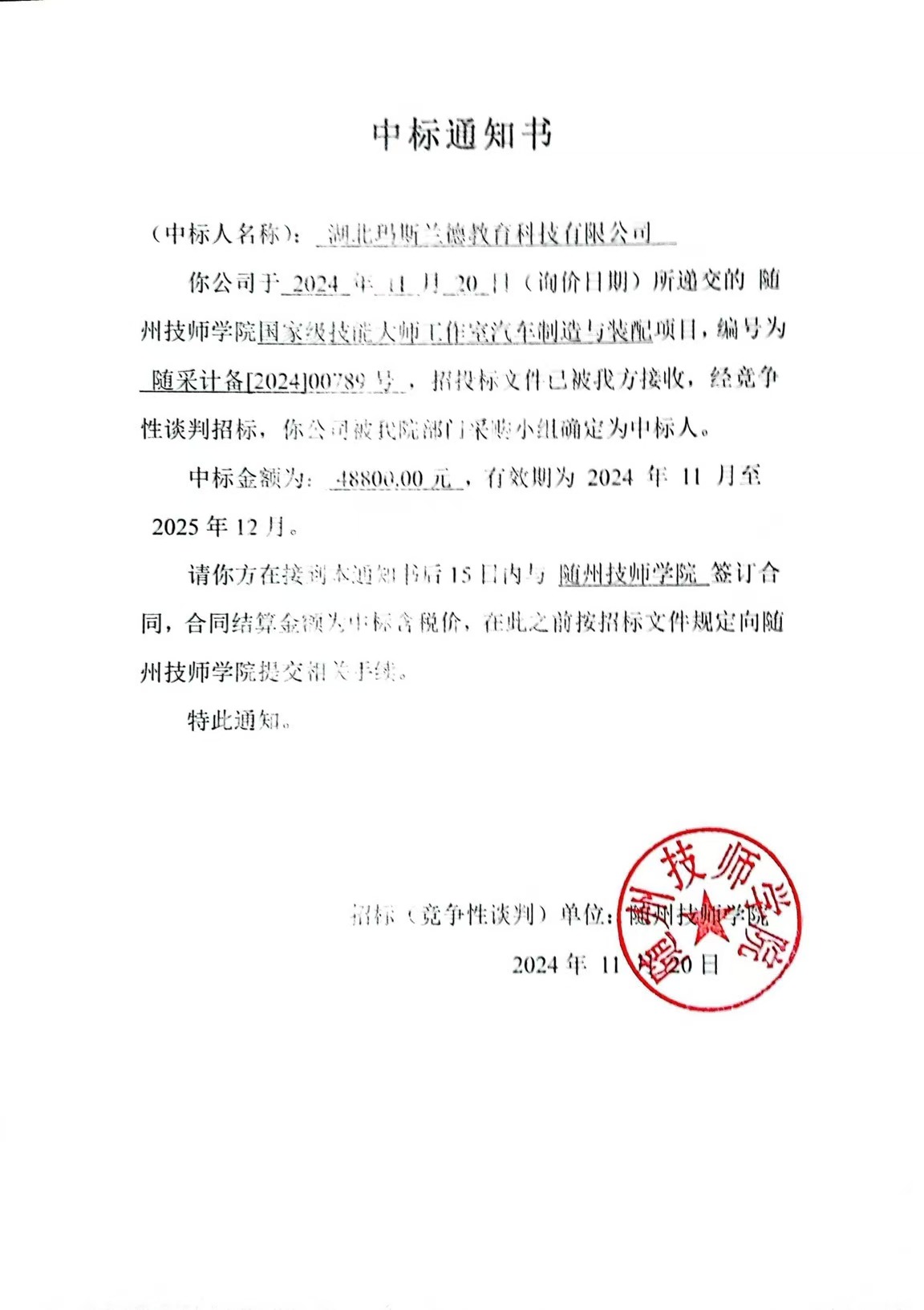上篇新聞:中標(biāo)通知書