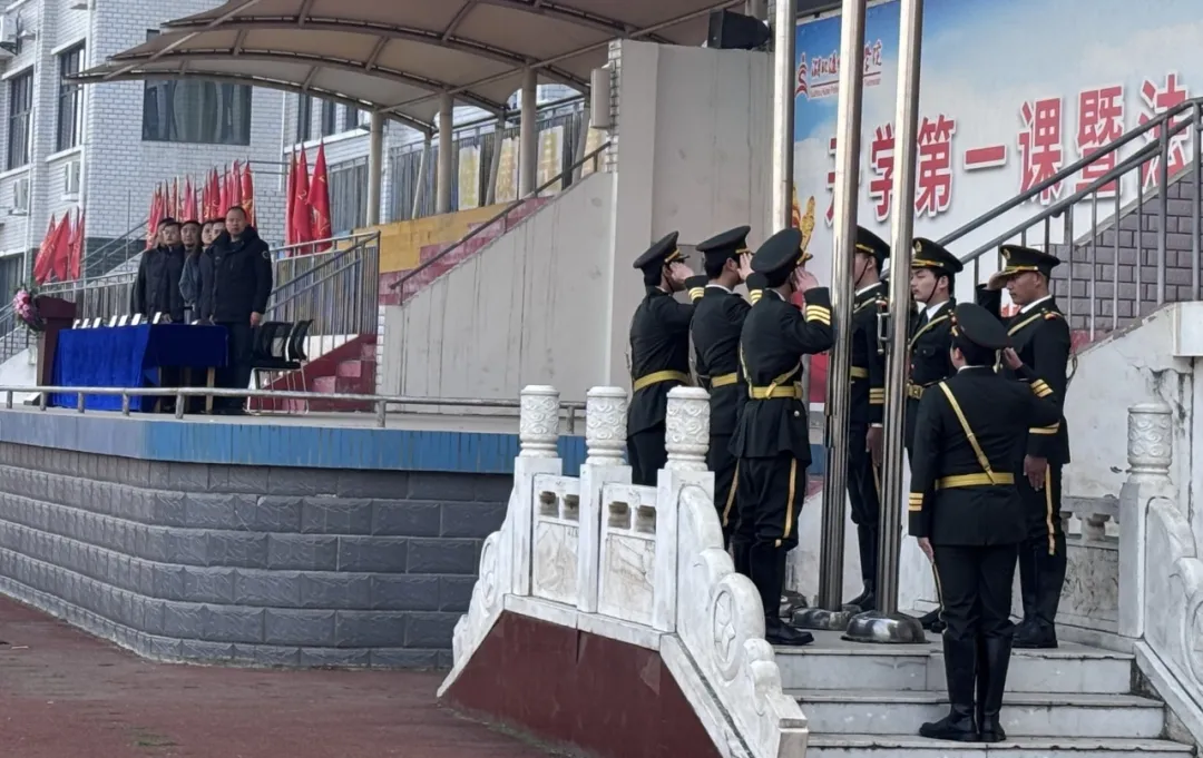 國歌奏響,全體師生莊嚴(yán)肅立(lì),目光堅定注(zhù)視著迎風飄揚的五星紅旗(qí),以昂揚之姿、自信之態迎接百日衝刺新征程。