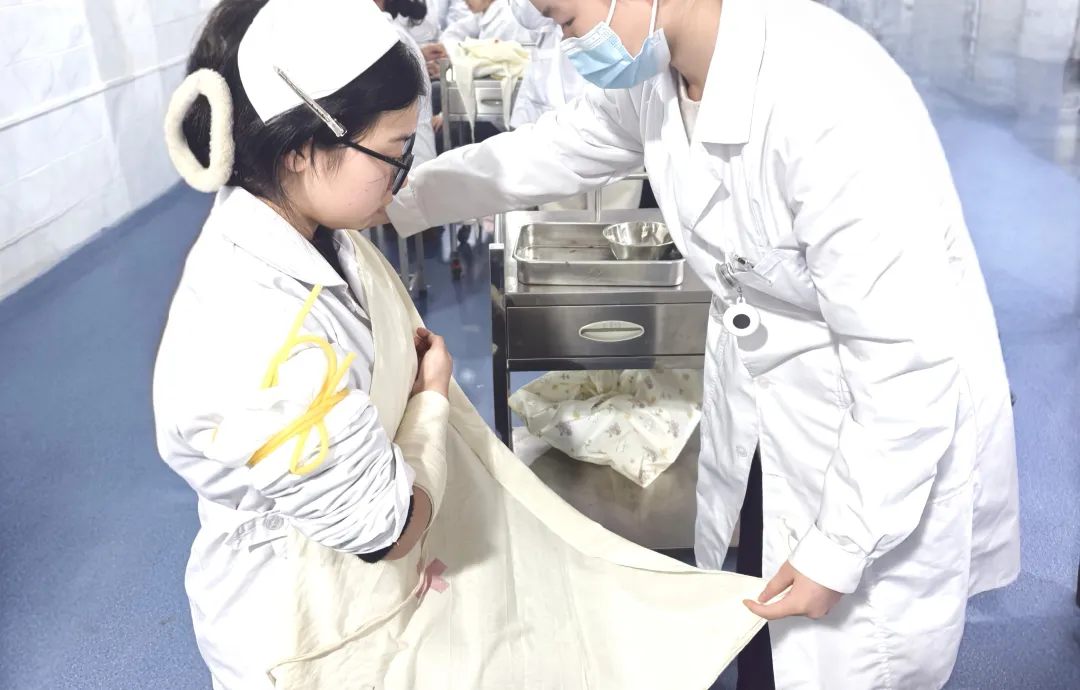 護理專業聚焦臨床核心能力培養(yǎng),創新構建“課堂實訓強化理論應用、專項突破補足技能短板、全真模擬提升應試能力”的三維一(yī)體備考模式。在三輪(lún)模擬考試的數據支撐下(xià),教師團隊(duì)精準定(dìng)位學生薄弱環(huán)節,針對性開展無菌操作、急救技術等六大模塊特訓。實訓教室內,身著護士服的學生(shēng)們專(zhuān)注(zhù)完成靜脈穿刺、心肺複蘇等高精度操作,器械碰撞聲與計(jì)時器滴答聲交(jiāo)織成嚴謹的備考交響,展現出"以技礪能、以行踐知"的職業風範。