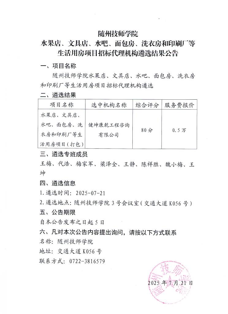 上篇新聞:隨州技師學院 食堂勞務外包、大宗食材采購及校園超(chāo)...