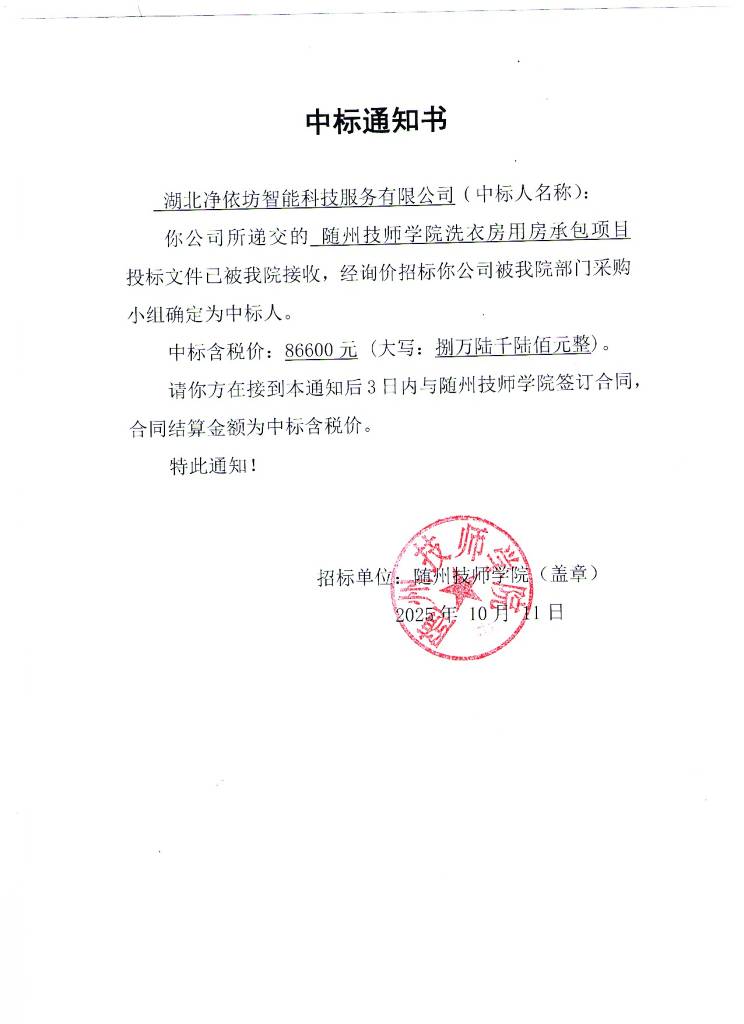 上篇新聞:隨州技師學院洗衣房用(yòng)房承包項目詢價公告