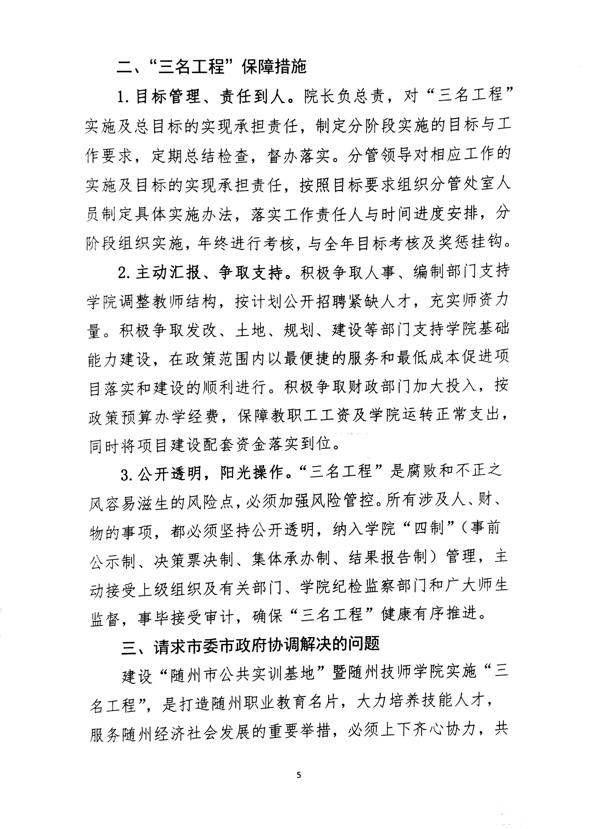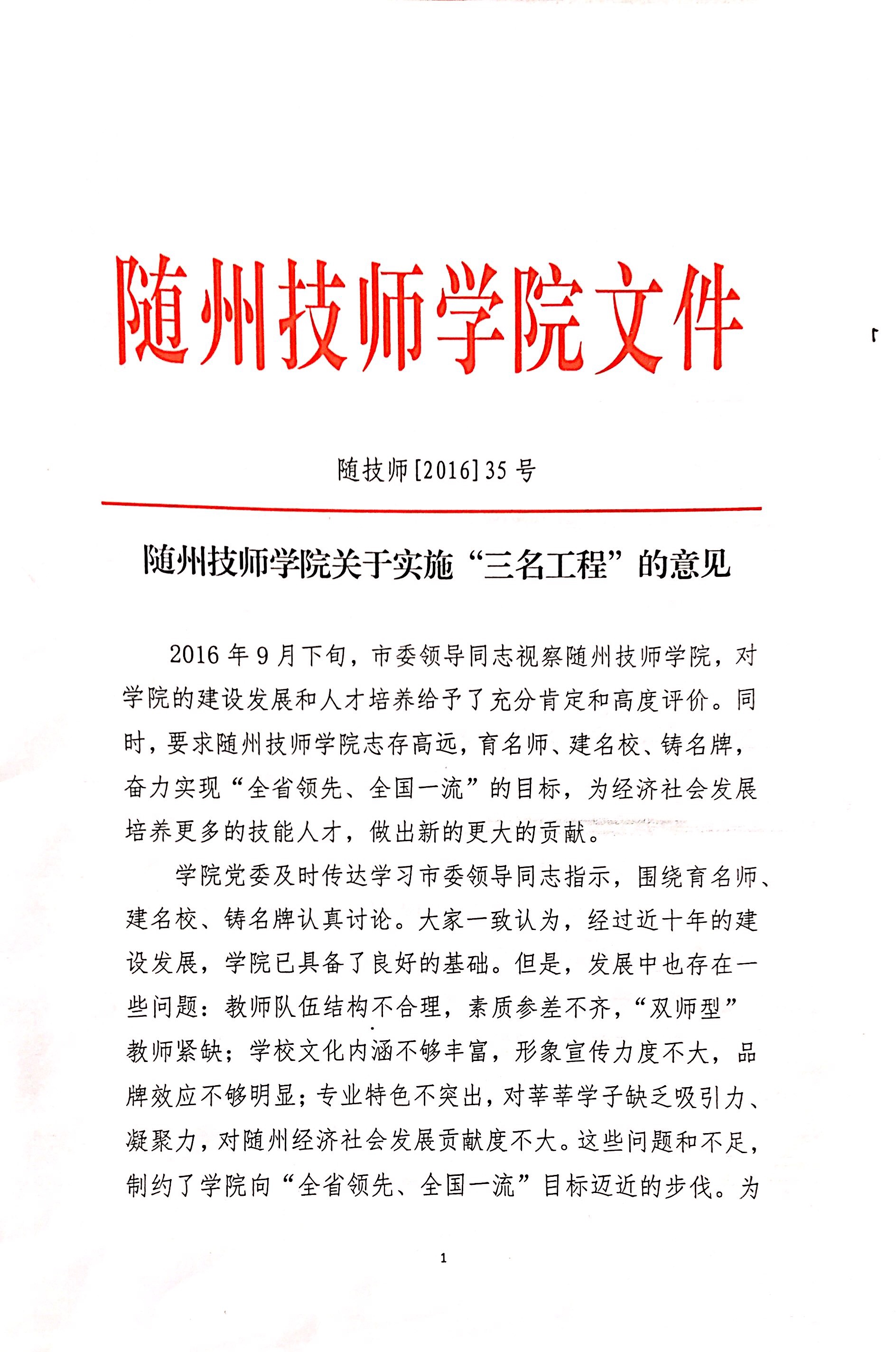 隨州技師學(xué)院關(guān)於實施“三名工程”的意見