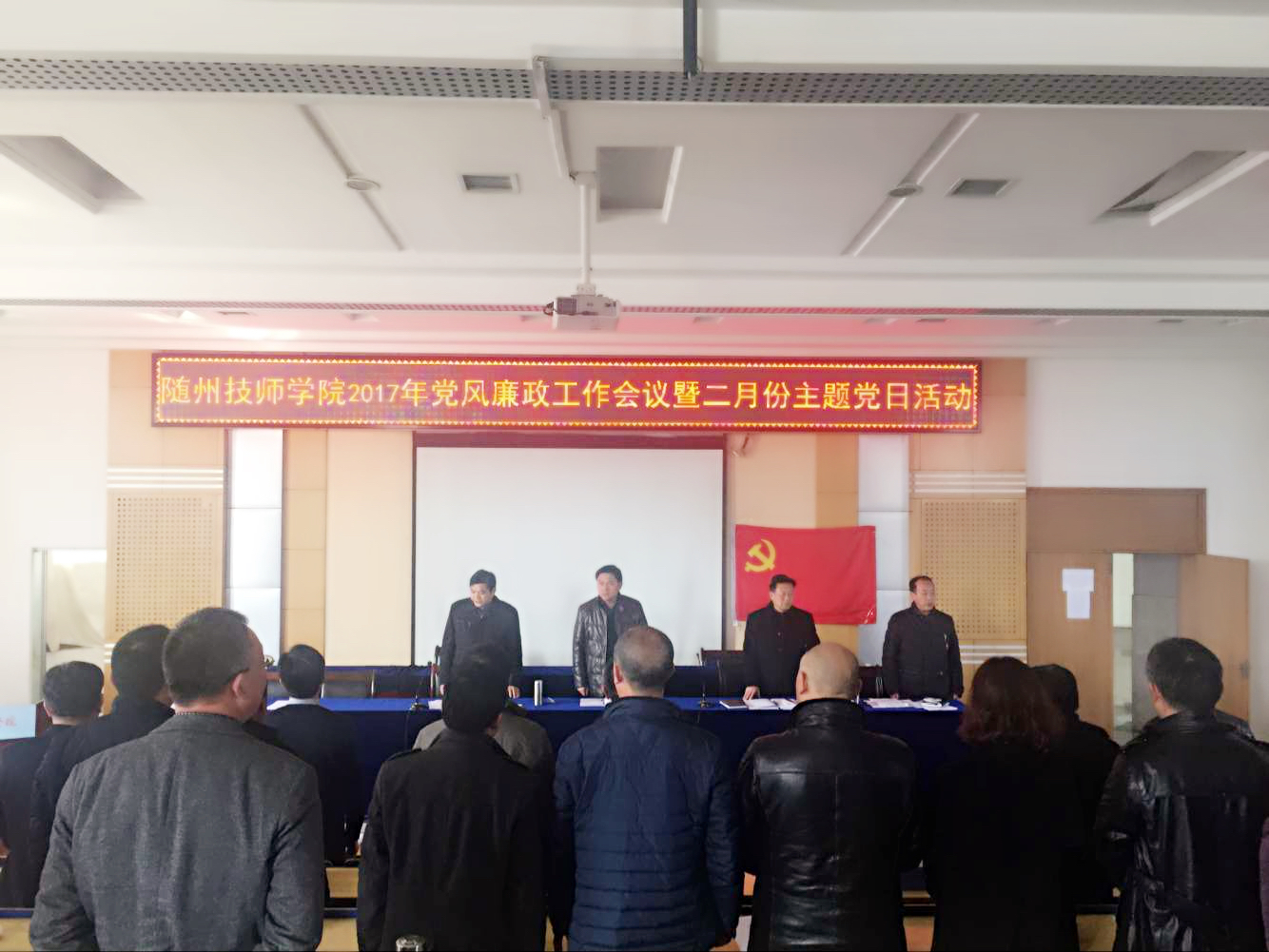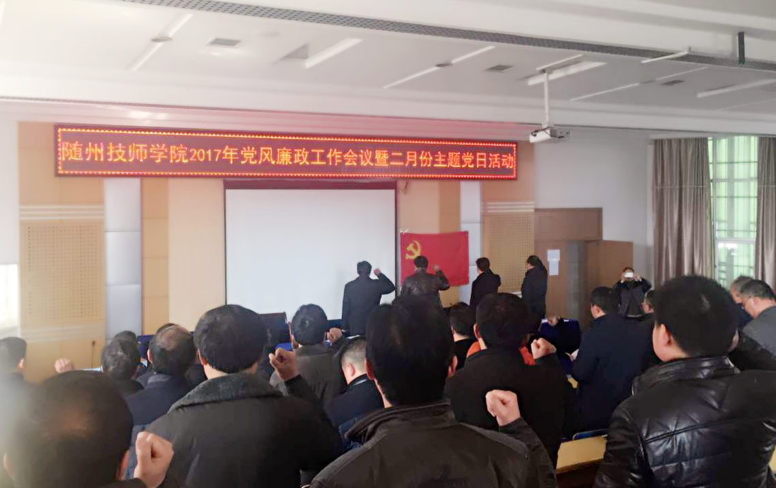 近日,隨州技師(shī)學院召開黨風廉政工作會議暨二月份主題黨日活動,學院(yuàn)黨組成員及全院黨員參加了會議。會上,全體黨員現場交(jiāo)納黨費、齊(qí)唱《國歌》、重溫入黨誓詞(cí),黨員王梅同誌領學《中國共(gòng)產黨廉潔自(zì)律準(zhǔn)則》。