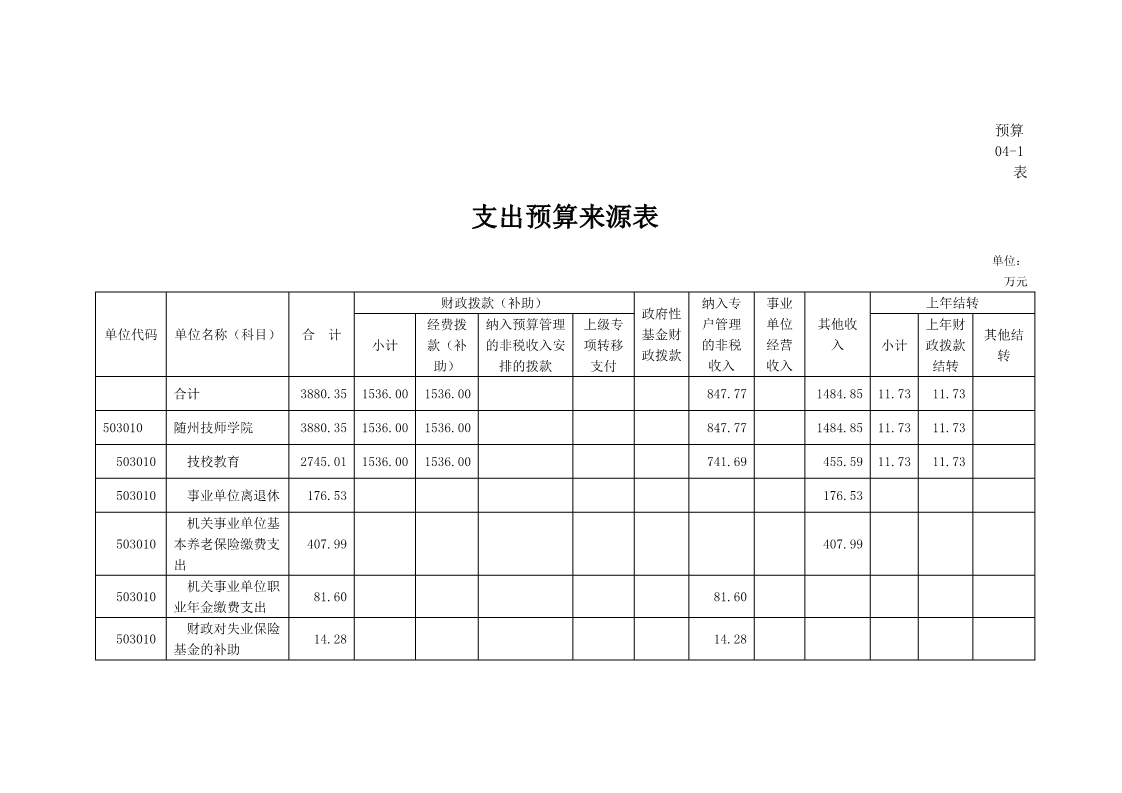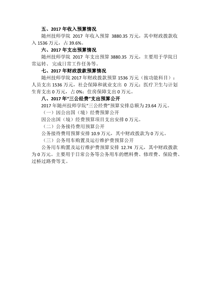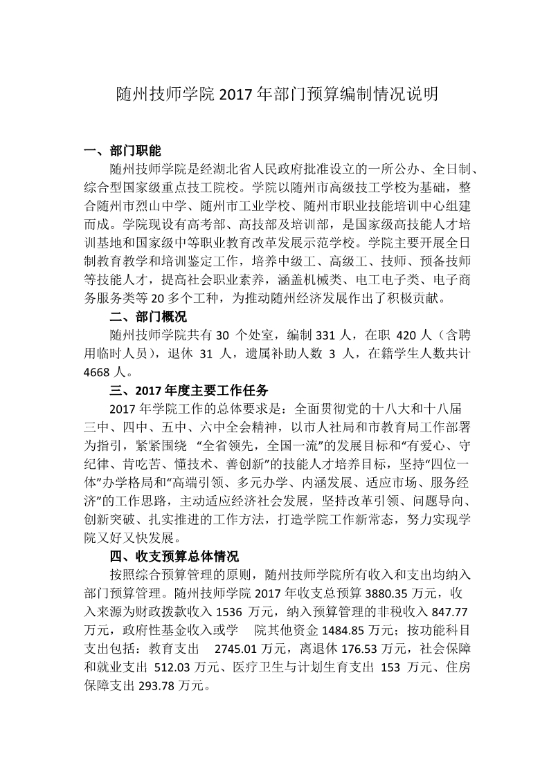 隨州技師學院2017年部門預算編製說明