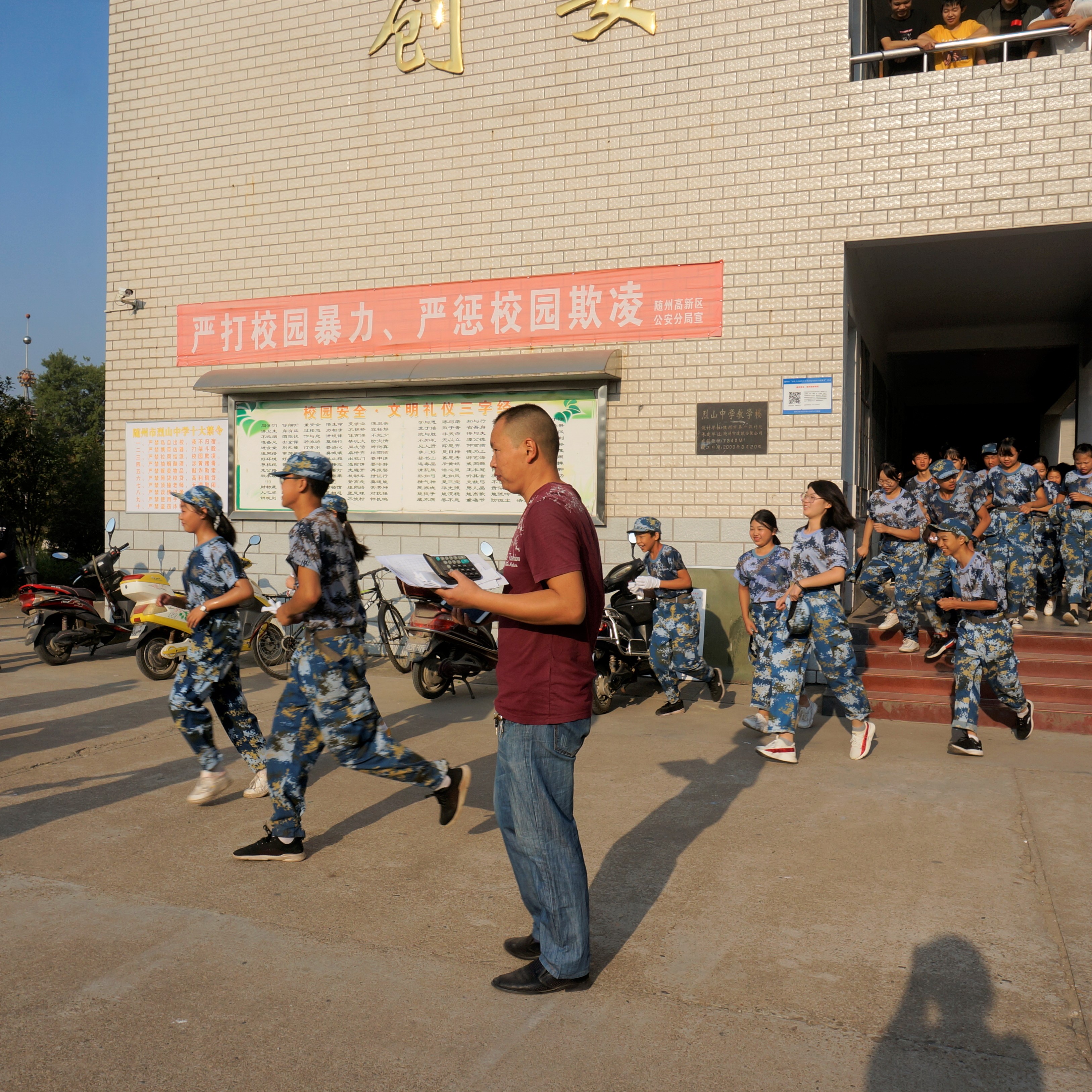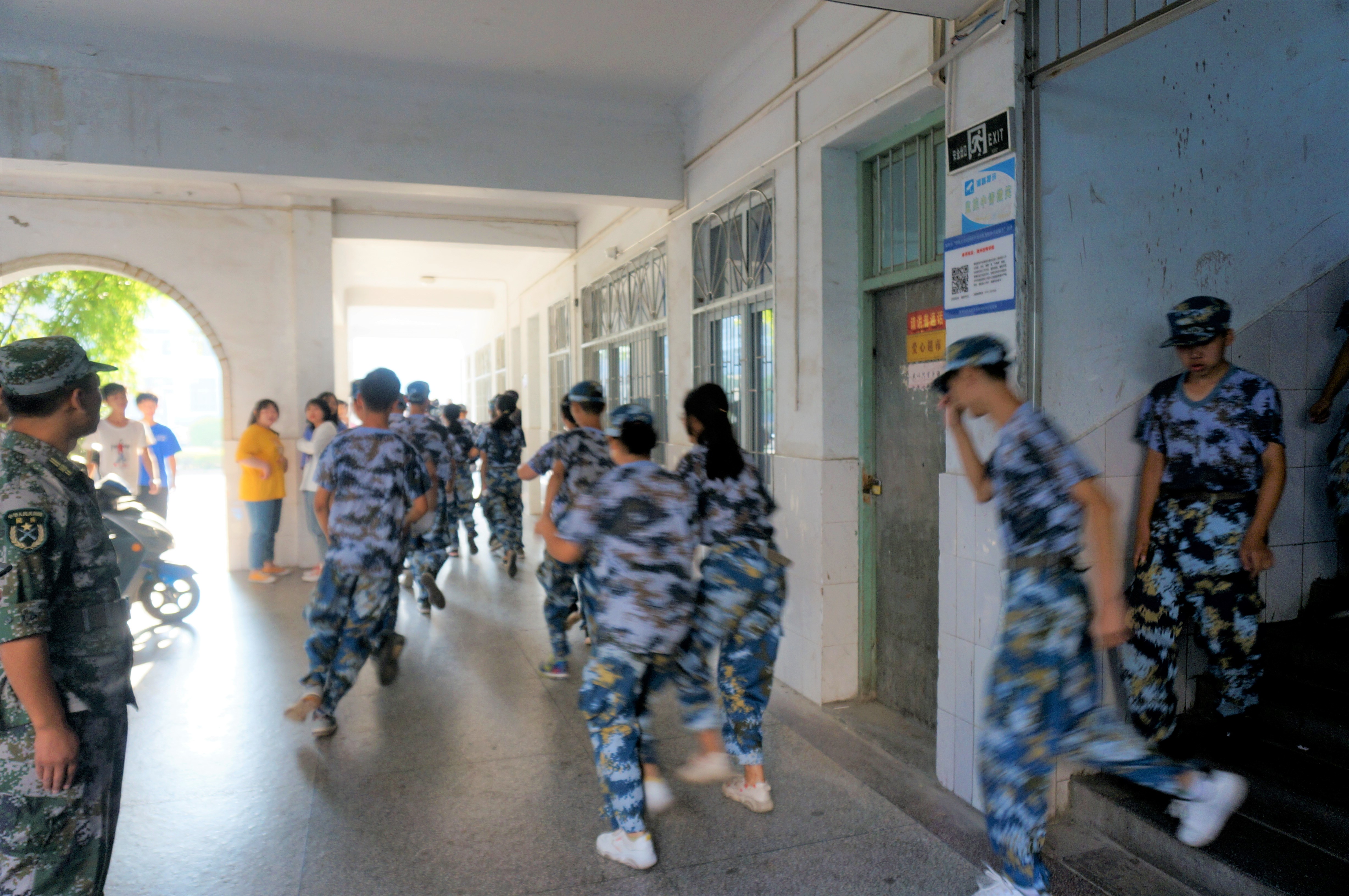 8點整,學(xué)院拉響警報(bào),各年級組主任組織(zhī)學生疏散,班主任值(zhí)守各樓道口,引導學生有秩序下樓前往操場集合。