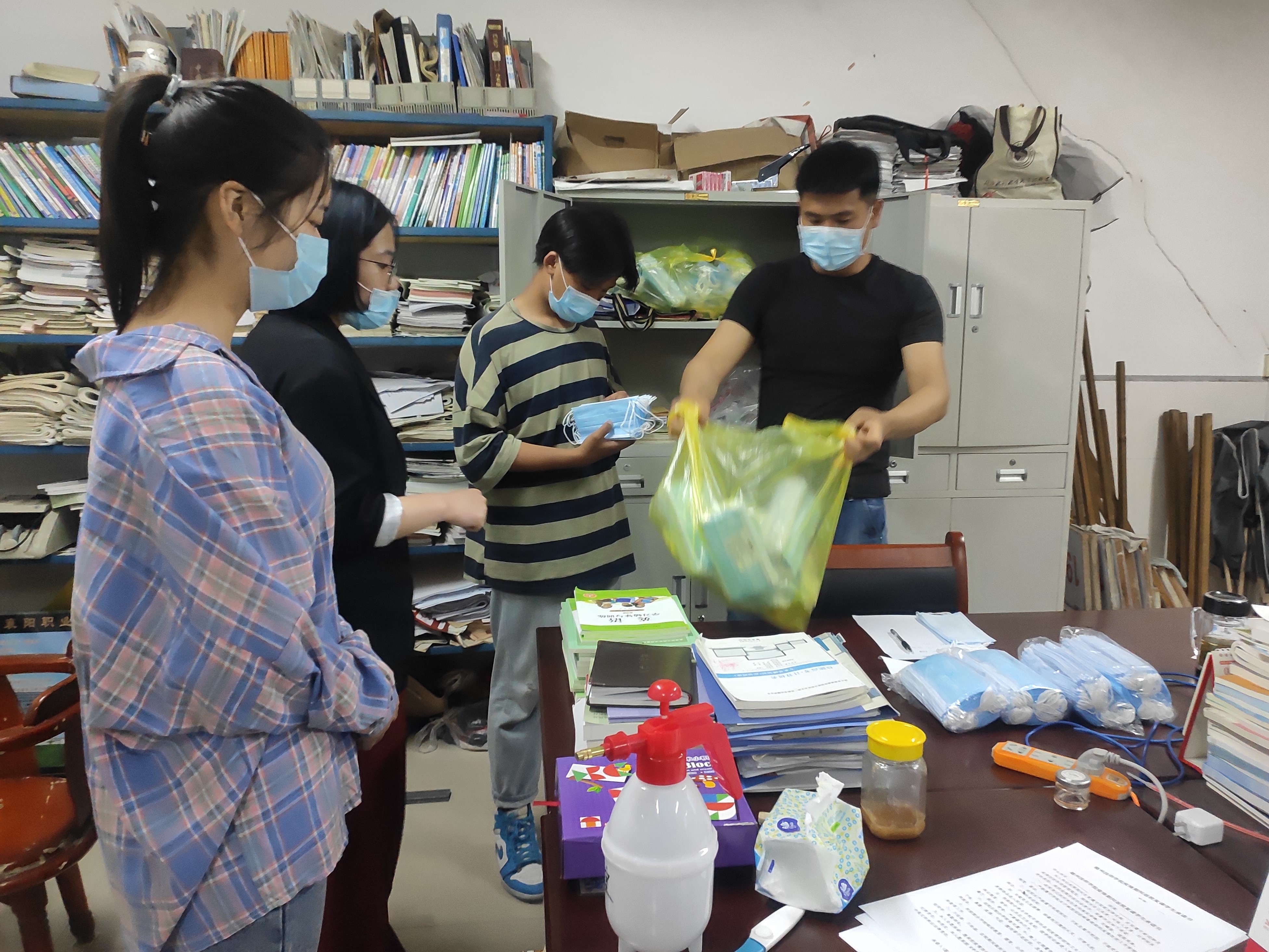 班主(zhǔ)任帶(dài)領同學們一同(tóng)重溫防疫知識,並為同學們發(fā)放此次在校期間的防護用(yòng)品。