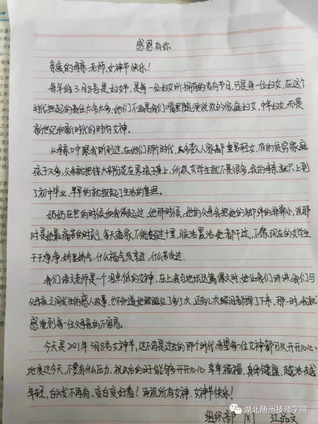 隨州(zhōu)技師學院舉行“感恩婦女節 諄諄恩師情”