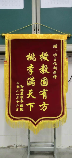 近日,我院技工教育1912班一位學生家長心懷感激地來(lái)到學校,真誠地(dì)將一麵印“教授固有方(fāng),桃(táo)李滿天下”的錦旗送到1912班班主任胡成成(chéng)老師手上。