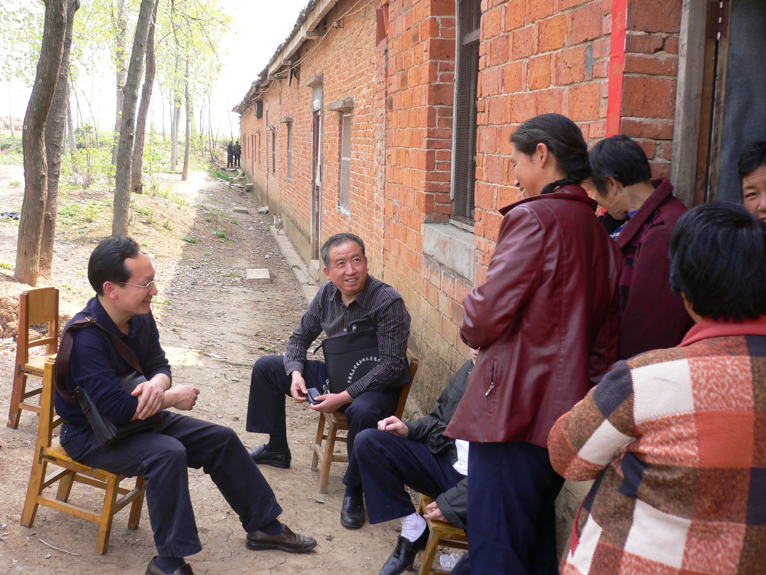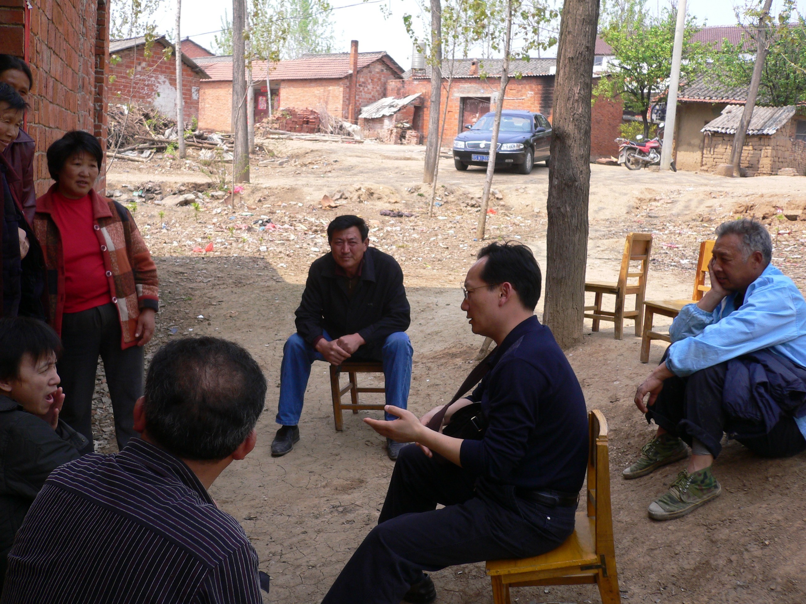 | 工(gōng)作人員在和農民兄弟一起勞動 | 副校長夏洪濤與農民談心 |